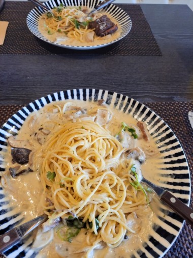 그릴드 버섯 크림 파스타