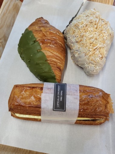 저희 라푀유는 최고급 프랑스 버터와 밀가루를 사용하여 매일 신선한 생지를 매장 내에서 수제로 직접 생산하고 있습니다. 저희가 비록 매장이 협소하여 앉아서 드시고 가실 장소가 없지만 부산에서 크로와상 맛으로만 본다면 정말 최고라고 자부할수 있습니다. 한번 방문하신 분들은 꼭 다시 재방문 주실 정도로 단골이 많습니다. 저희 라푀유만의 독특하고 특별한 시그니쳐 제품들과 각종 동물성생크림으로 만들어 느끼하지 않고 부드럽고 고소한 크림이 듬뿍 들어간 크로와상, 페스츄리류가 저희 대표메뉴입니다. 저희의 모든 제품들은 고객님들께 최대한 부담을 줄이고 합리적인 가격으로 제공해드리기 위해 저희의 마진을 최대한 줄여서 책정하였습니다. 많이 많이 찾아주시면 더욱더 최고의 맛으로 보답해드리겠습니다. 감사합니다.